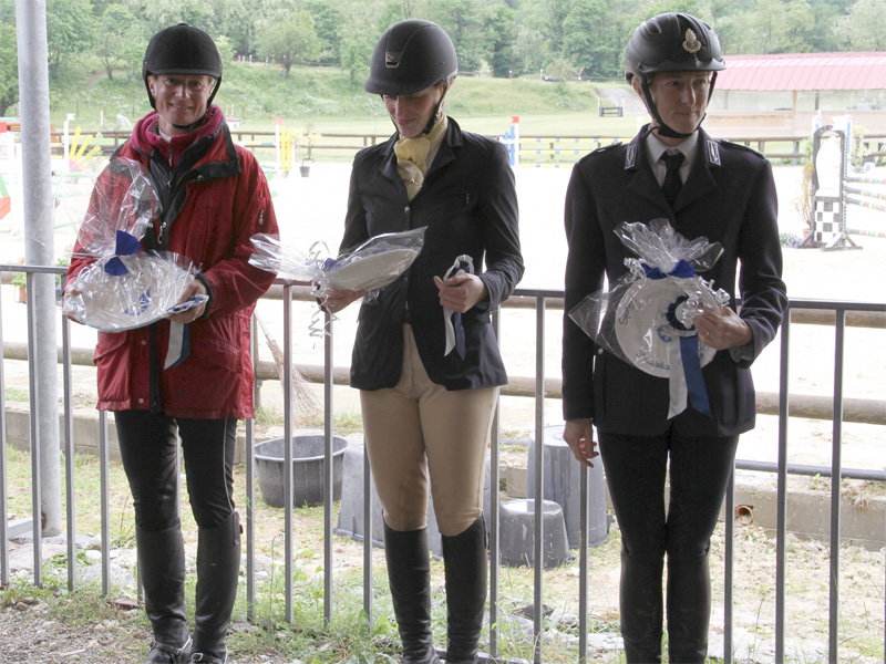 Springen: Unter sintflutartigen Bedingungen, musste als erster Grecvol ran. Er zeigte eine gute Runde auf dem total überschwemmten Platz, konnte zwei Abwürfe aber trotzdem nicht verhindern. Da auch die Konkurrenz nicht fehlerlos blieb, konnte Grecvol am Ende mit 52.8 Punkten einen souveränen Sieg feiern. Fantasia hat vor dem Springen einen Vorsprung von 0.4 Punkten und musste ebenfalls als letzte ihrer Kategorie an den Start – und beide Paare vor ihr blieben fehlerlos im Springen. Brigitte zeigte jedoch keine Nerven. Sie ritt ein flüssige und rhythmische Runde und ohne je einmal am Holz gewesen zu sein, überquert sie die Ziellinie in der Zeit. Ein toller Sieg von Fantasia, welche nach mehrjähriger Pause in der Vielseitigkeit, innerhalb von nur 1. Jahr erfolgreich in CIC1* geführt werden konnte.
