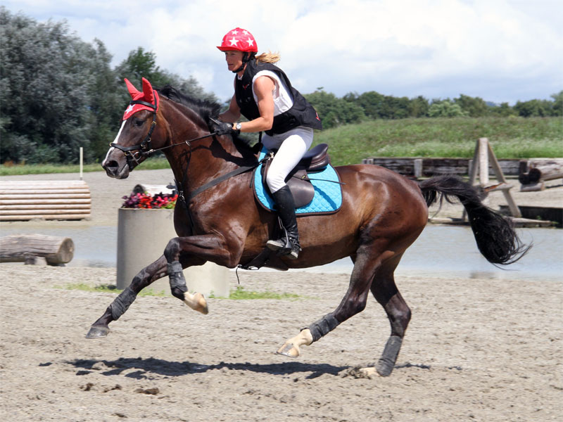 Nach den verschiedenen Trainings in Aarau, Frauenfeld, Murten Birchwil, etc. zeigte sich Montano in Avenches fast schon routiniert. Obwohl zum ersten Mal auf dem Platz, zeigte er sich unbeeindruckt von all den angerittene Hindernissen.