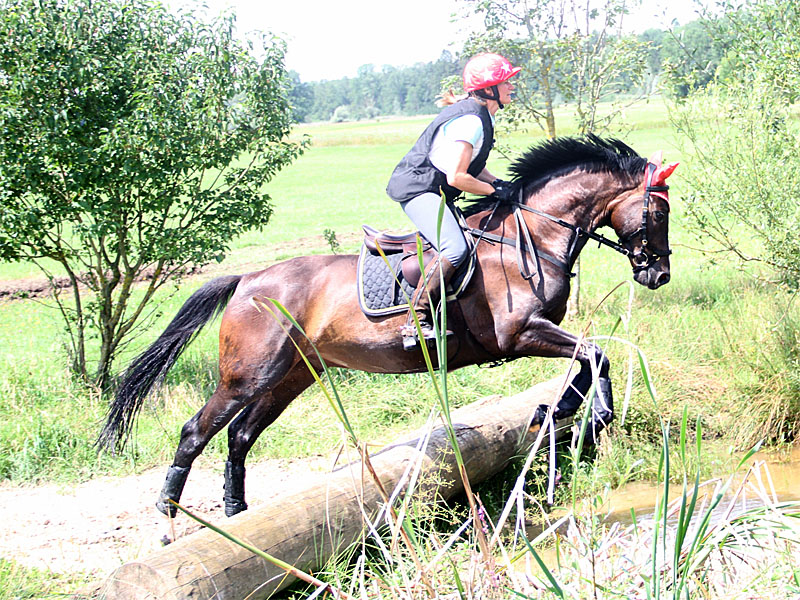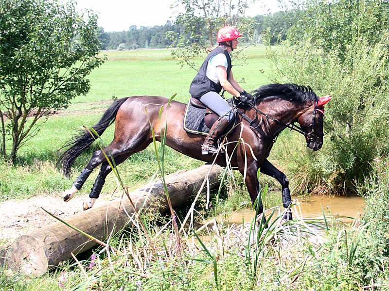 Da es in den letzten Tagen ausgiebig geregnet hatte, war der Teich für einmal gut gefüllt. Montano machte seine Sache auf Anhieb gut und bewies seine Geländequalitäten. Ein toller kleiner Wallach der uns hoffentlich noch viel Freude bereiten wird.